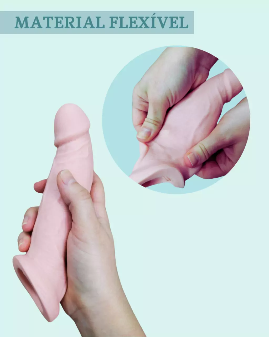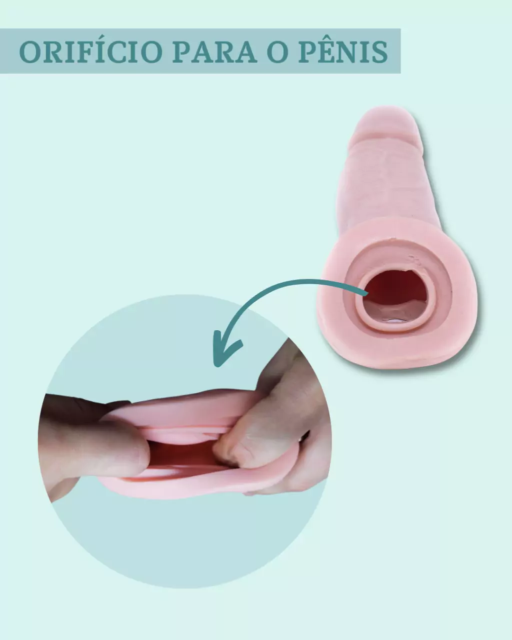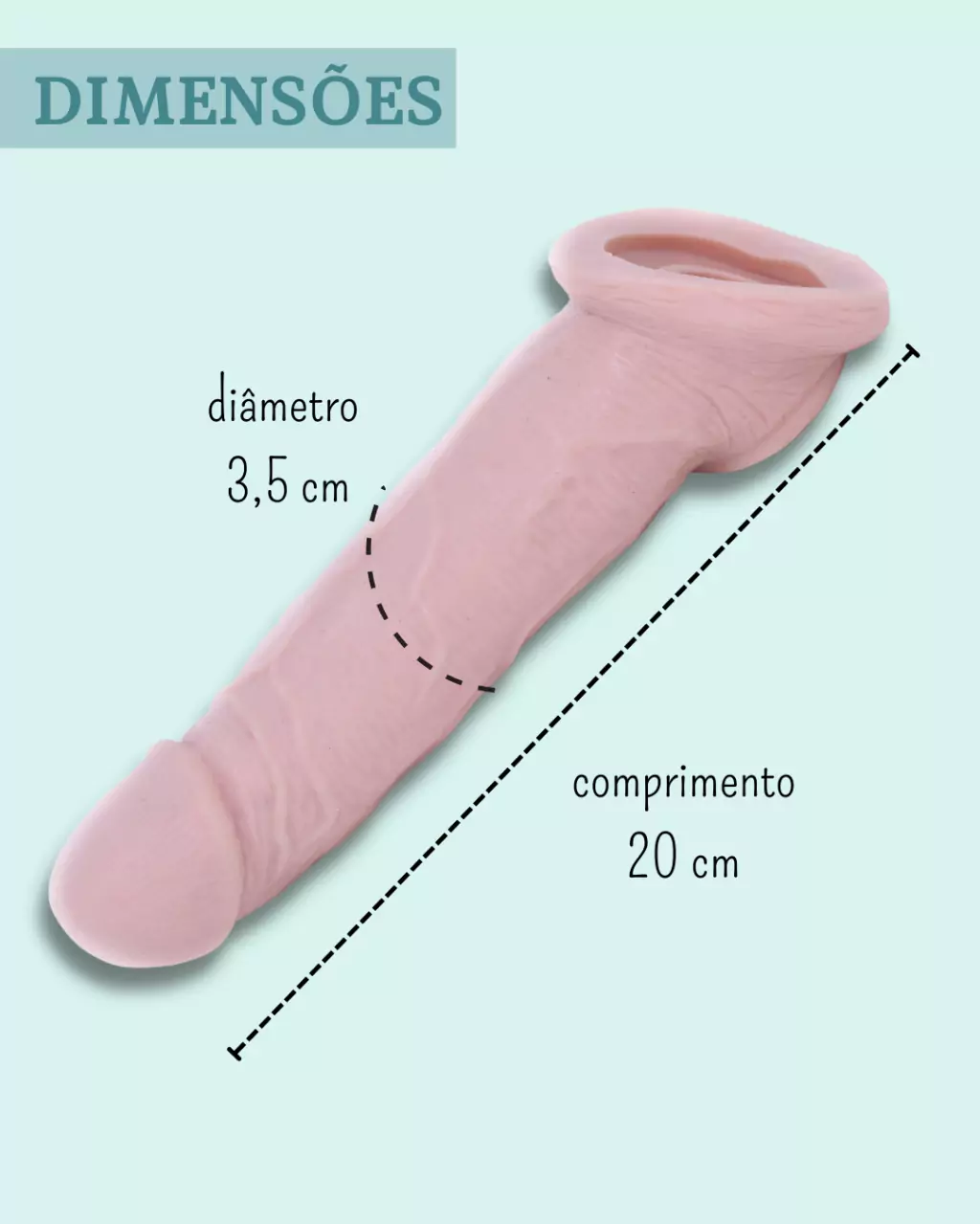 A capa peniana possui um extensor com 6 cm em sua ponta (é essa extensão que vai somar ao tamanho real do pênis e dar a impressão de que está maior).