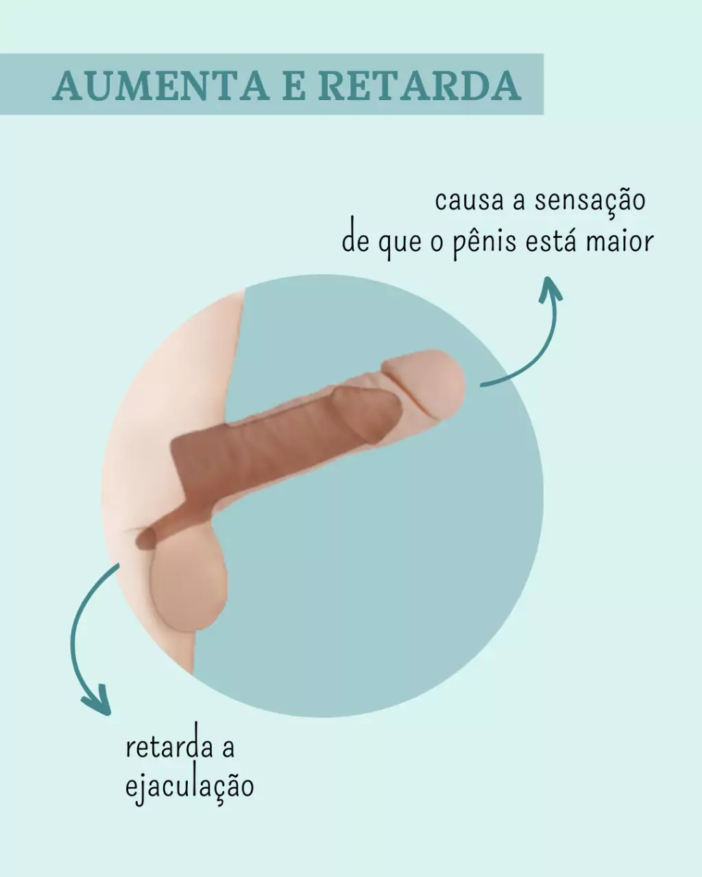 - Causa a sensação de aumento do tamanho e da circunferência do pênis;